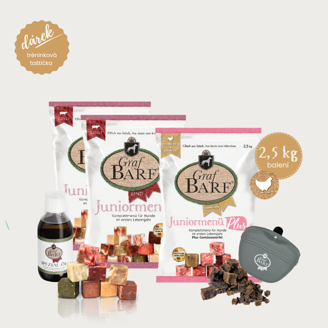 Junior hovězí menu ze 14. a junior kuřecí ze 7.rozdílných syrových kostek garantuje pestrou, vyváženou a zdravou stravu pro Vaše štěně od 14. týdne. Je speciálně přizpůsobeno pro růstovou fázi, s důležitým poměrem vapník - fosfor a pro energetické potřeby mladých psů. Kostní kostka je velice jemně nasekaná a proto je ideální pro správný růst a vývin zubů.